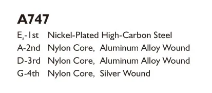 The E-1st string is made of superior high-carbon plated material. Through special production process, the A-2nd, D-3rd, G-4th strings are wound with high quality multifilament nylon core, selected aluminum alloy and for G-4th silver wound. This delivers mellow high pitch, rich low pitch and provides comfortable surface, the whole set of strings are harmonious. With complimentary string A-2nd. 4pcs/set